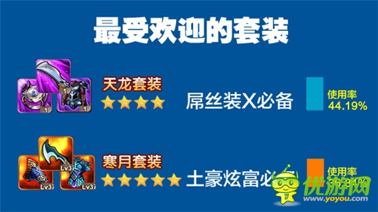 (1)4星 天龙套装 屌丝装X必备 (占四星套装使用率的44.19%)