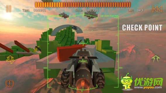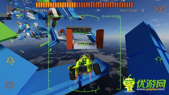 玩法上,《火箭飞车2》采用重力感应加虚拟按钮结合的方式进行游戏操作,重力感应控制飞车的左右方向,左上角按钮为喷射加速,左下角按钮是刹车,右上角按钮为普通加速,右下角按钮则是刹车并后退。值得注意的是,飞跃中,玩家可以利用重力感应,让iPhone向后倾斜,从而给予飞车更大的飞跃角度,成功飞跃跨度较大的赛道。