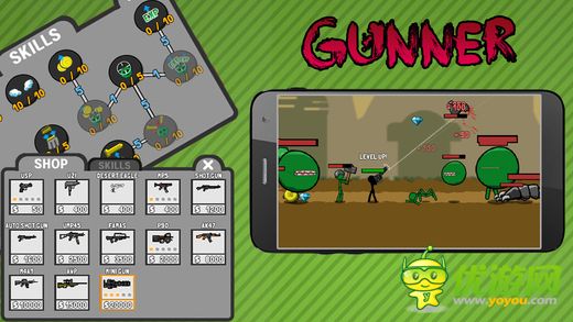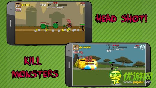 《火柴人枪手-Stickman And Gun》一款简单的射击游戏,游戏操作简单根据提示选择自己舒服的操作方式。杀死各种各样的怪物,收集金币升级装备,如果爆头还有加分哦,更有无需账户的排名等着你来上榜。