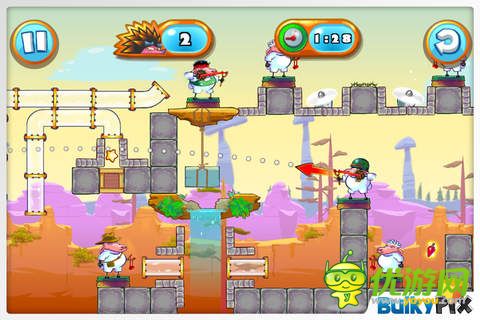 幸好有 Sheepard 上将在看守着羊圈。这位在羊群中有着极高威信的角色带着一个弹射器和刺猬弹,派出一支由羊战士组成的突击队去击退狐狸,让牧场恢复往日的平静。玩家需要使用弹射器,顺着一只只羊把狐狸打飞。 一边设法清除进攻途中的障碍物,一边要注意保护笨拙的羊战士们免遭敌人的暗算!