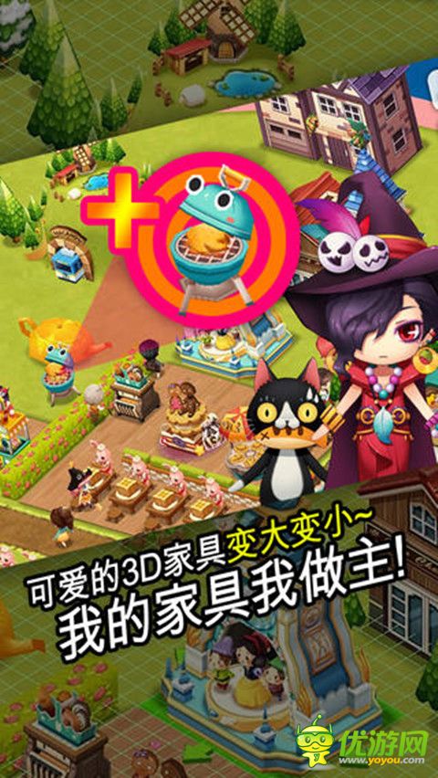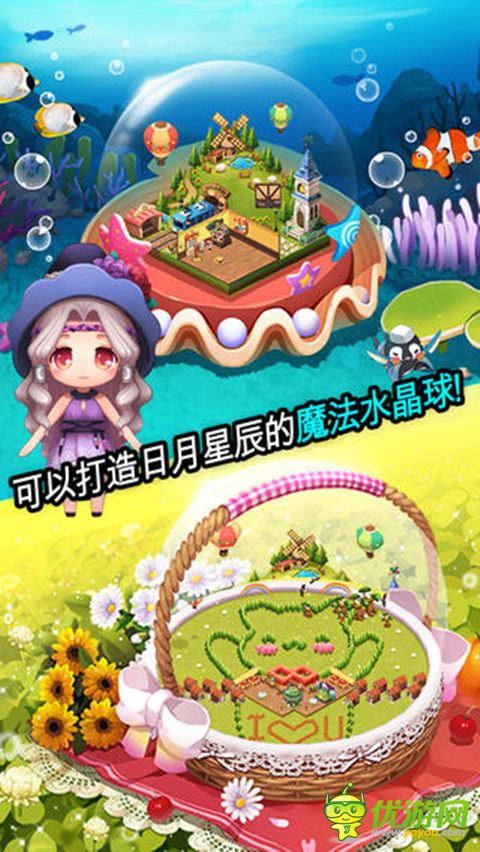 现身!星星和月亮;变身!魔法餐桌- 全3D+全方位旋转!尽情打造如意的天空和背影!- 魔法家具大小随你而定!- 尽情享受精美背景和音乐!