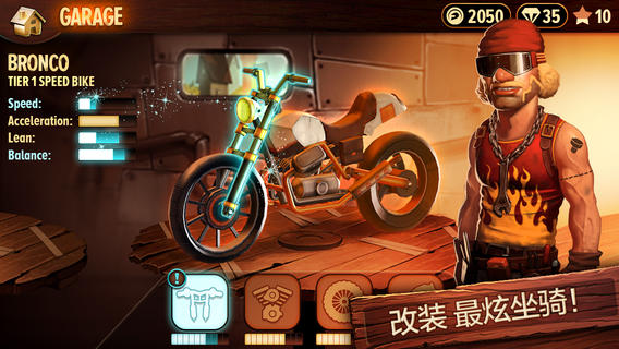 《特技摩托:前线》是一款休闲、闯关模式摩托赛车游戏,足够高清的画面,摩托车手帅气的造型,粗犷大气的风景,嶙峋石块搭起的赛道,节奏强烈的音乐音效,如果有足够的技术可以做出前滚翻后滚翻的摩托特技,翻个跟头大秀你的车技,在完成任务后可以得到一些金币用来升级摩托的配件,快快拿起手机感受下这竞速的快感。