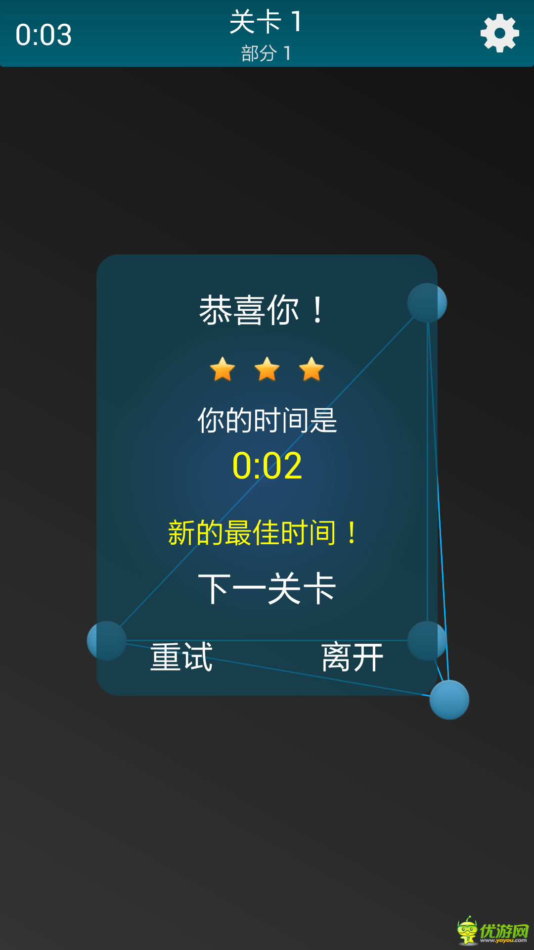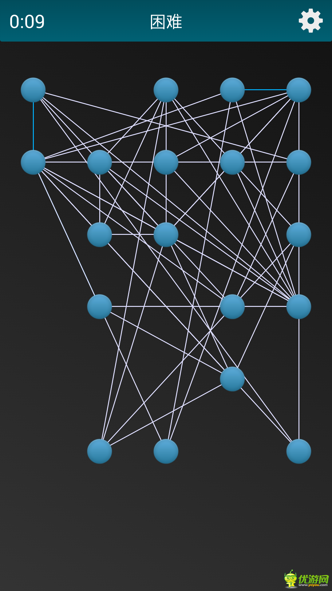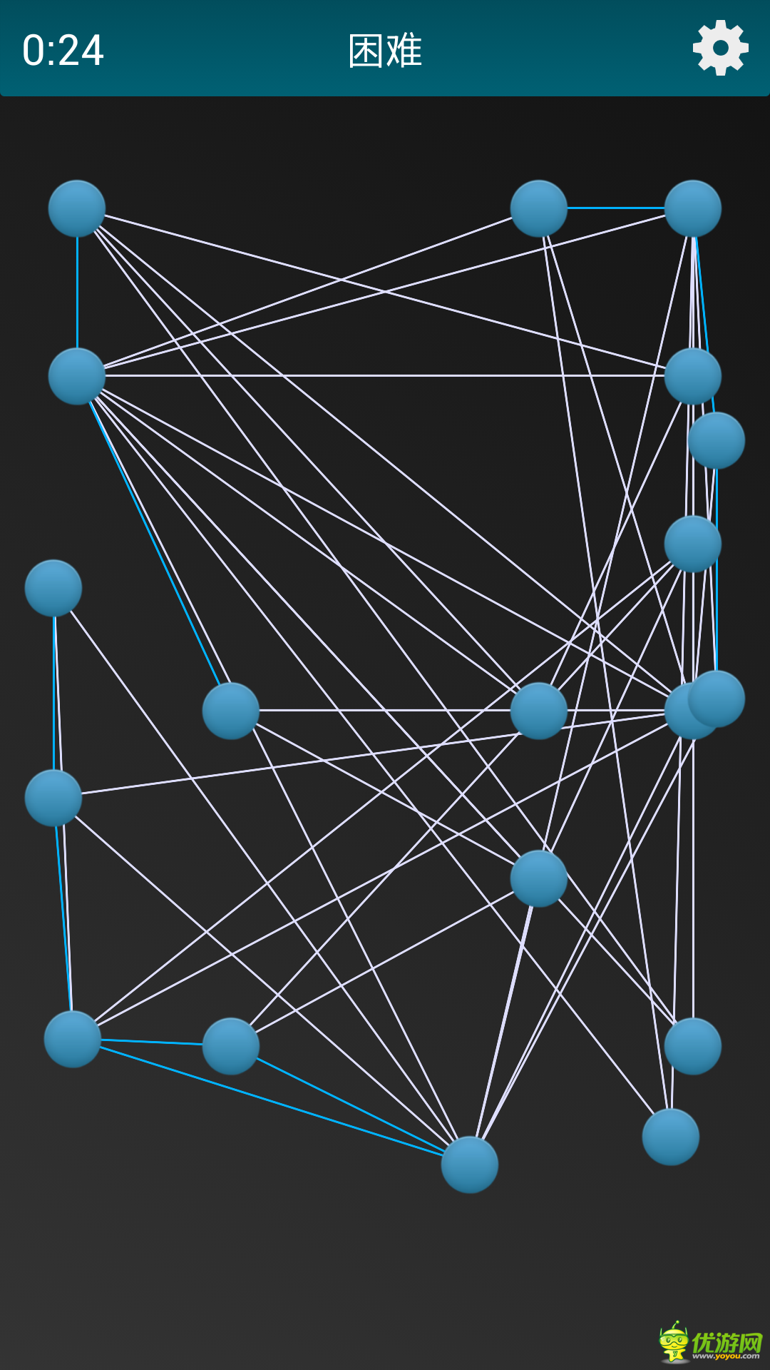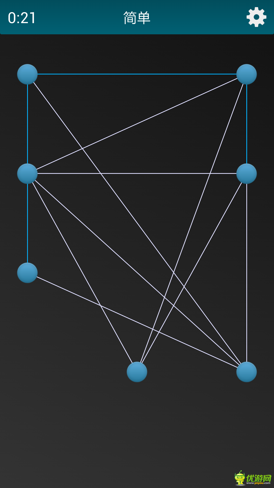 《绳索解密》是一款益智休闲虐心游戏。用最快的速度,通过拖动小球,将所有的白线变为蓝线即可过关。多试几个就能找出游戏规则了。