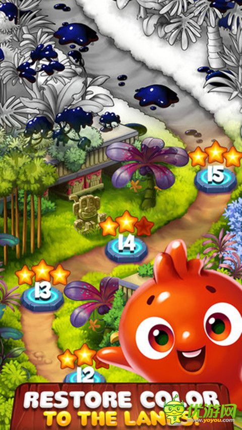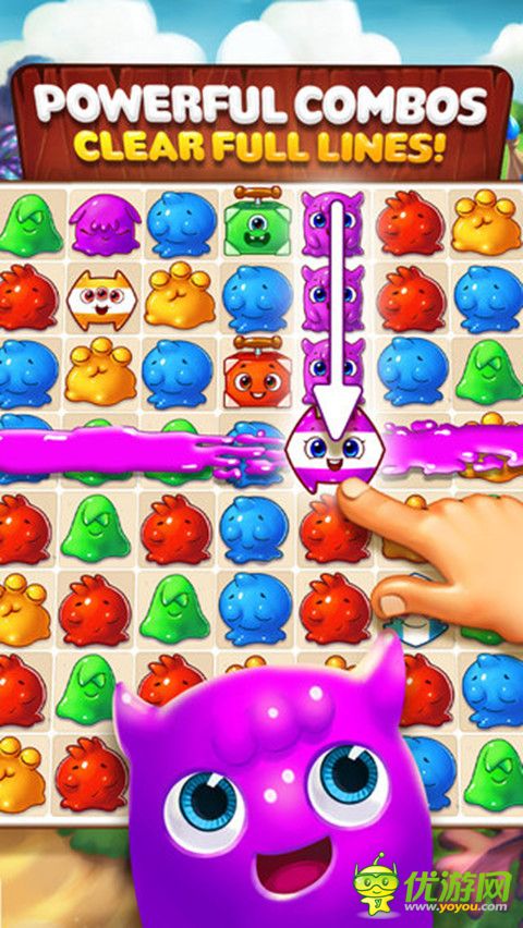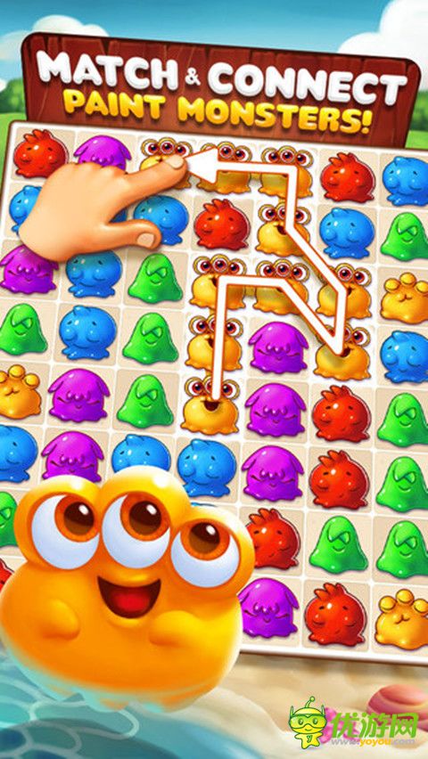 《画怪物》是一款连线消除闯关游戏,将同样的颜色连一起消除后得分闯关,随机出现的冰块、墨水怪和墨水囚笼是你的劲敌,在规定步数内消除它们。