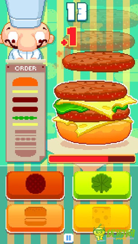 在汉堡店里为你的客人做上好吃的汉堡,你会得到一些报酬,按照正确的顺序做出汉堡。