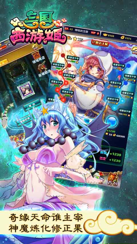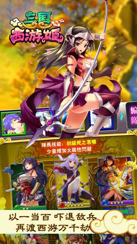 《三国西游姬》创新合并了三国、西游的故事线,西天取经和统一天下两不误,毫无违和感的同时令玩家眼前一亮!可谓是三国和西游碰撞,武将与妖魔的斗争!《三国西游姬》使玩家感受不一样的传说故事,享受不一样的视觉冲击! 游戏特色 1.自动战斗,解放双手! 2.战斗不孤单,女神来相伴! 3.配乐准确,精确配合不同场景! 4.画面美轮美奂,技能效果震撼! 5.卡牌丰富多样,组合变化多端! 6.卡牌设计精美,技能特效华丽! 7.操作简单有趣,但不失策略性! 8.诸多玩家互动,对战精彩犀利! 9.全武将卡牌女神化,满足你的眼球! 10.丰富多彩的地图副本等待玩家去征服!