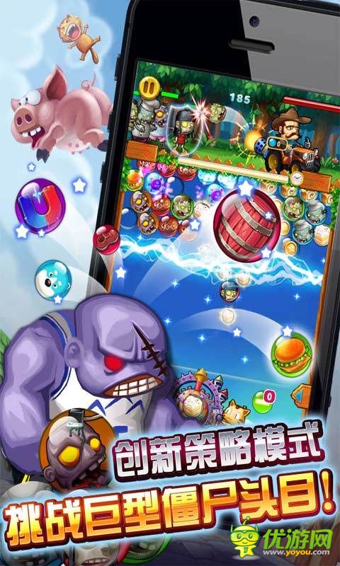 一款创新策略打僵尸游戏,集宠物炮手强化养成、武器机车弹药升级、跨屏操作等策略技巧玩法于一身,还独创性增加了泡泡战斗界面与萌怪物战斗玩法的结合。