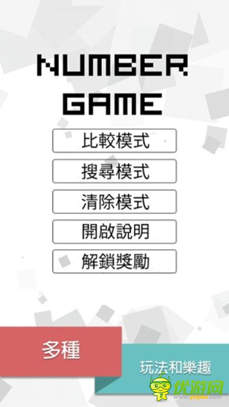 这是一个和数字有关的游戏,结合了益智、解谜和音乐游戏元素,让你在美妙的音乐下享受单纯但又华丽的视觉飨宴,以及简单但也可以很複杂的玩法和乐趣。游戏提供了三种玩法:比较模式、搜寻模式和清除模式,在游戏进行的过程,随著完成度的提高,将解开许多的隐藏要素! 游戏的规则很简单,你只要记住一件事:当背景是蓝色时,从最大的数字开始;当背景是红色时,从最小的数字开始。