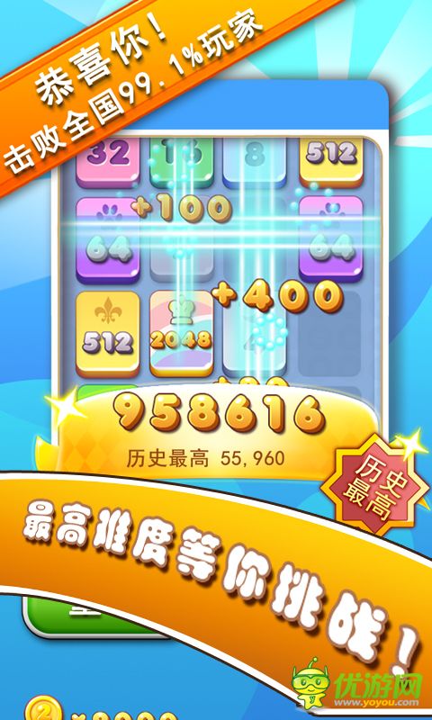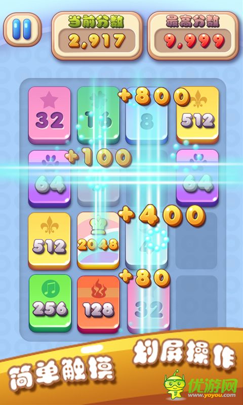 《合成2048》不再是终极目标甚至可以去挑战4096甚至8192,小伙伴们赶快来加入合成大军吧!挑战属于你自己的《2048》,游戏画面精美,玩法简单,让人爱不释手,停不下来!