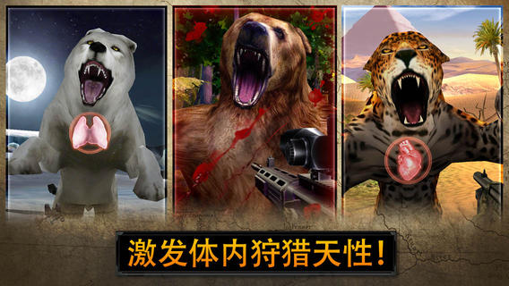 生动世界等你去发现,超过100种动物可供狩猎,让你拥有身临其境的真实狩猎感受!不过一定要小心那些并不怎么友好的动物朋友:棕熊,灰狼,猎豹可不是坐以待毙的小绵羊!武器改装可能无限,将自己心仪的武器改造升级成为传奇神兵!弹夹,瞄准镜,枪托,枪筒,可能无限!超越巅峰舍我其谁,狩猎高难度大型动物,挑战Game Center好友,登上排行榜巅峰!每年的最佳狩猎季马上就要开始了,快加入我们的狩猎大队吧!