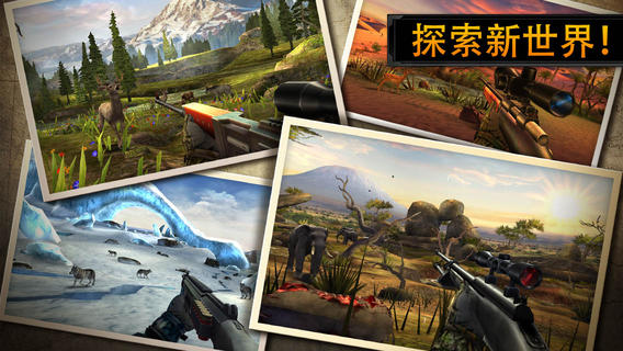 离开办公室,收拾行装,重回最原始的大自然,我们为您呈上手机平台上最逼真、最绚烂、最刺激的狩猎模拟游戏!北美,西北太平洋,南非,足不出户,在家环游半个世界,感受世界各地的自然风光,猎取世界上各种野生动物!