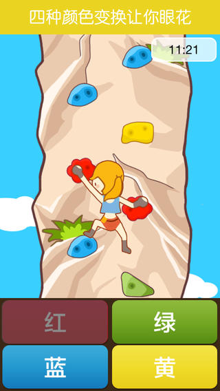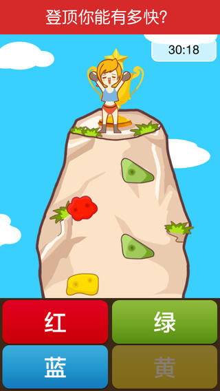 游戏玩法: 根据山上石头的颜色在底部点击对应的按钮,目标就是快速向山顶前进。点错颜色可是会从山上摔下来的哦!