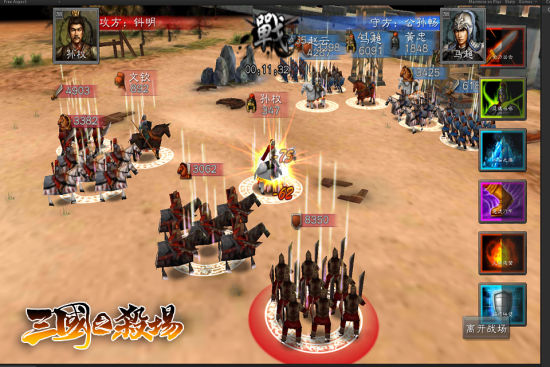 游戏在宣传上号称全3D画面真实再现城市和战场场景,可任意缩放和改变视角。怀揣着这种不明觉厉的心情小编在进入游戏后立马跪了,因为《三国之杀场》看起来根本是网页游戏好吗?现在的网页游戏都是基于WebGL的三维可视化开发的,不需要插件来渲染就能得到很不错的画质,就游戏画面的画质来说跟手机游戏是两个概念,显然在本作中,最起码厂商能让小编感受到网页游戏即视感,已经很难得了。整体画面场景刻画得非常厚重,没有采取什么Q化啊,卡通的设计感,而是走了厚重古朴的路线,看着兵将独自骑着马,身后跟着一群排列得四四方方整整齐齐的小兵们,就像是一本正经地让你去体验三国战争,而非什么卡牌啊冒险的休闲玩法。城池和野外战斗场景都比较写实,草垛,城墙,弓箭塔都让小编联想到了某企鹅的七雄争霸……“盖房子”已经不是战争策略游戏的卖点了,游戏中的建筑类型更偏向于实用化,建筑物也基本以写实古朴为特色,多是一些点将台、造兵、市场等建筑。外城的地图将地形融合在一起,自然连贯,不再是豆腐块式的场景图,玩家可以自由拖拽地图,非常随意。