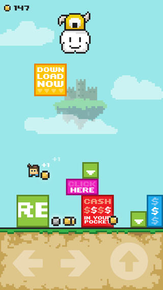 《免费任玩》是一款有着经典像素风的动作小游戏,游戏中玩家需要控制一个像素小人避开恶魔释放的方块,并赚取足够的赎金营救公主。不管是画面还是音乐风格都与玛丽奥的很相像,但显然玩法是不一样的。在游戏的过程中,恶魔会不断向像素小人投掷方块,此时玩家要先躲开方块,再跑到方块上踩踏,这样才可粉碎方块,从中获取金币。