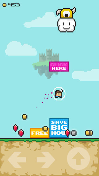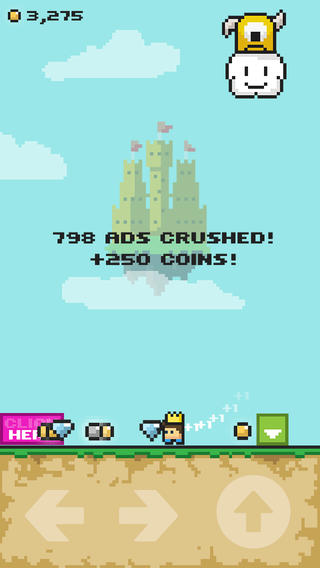 金币的用途很多,除了营救公主之外,还可以购买游戏内的特殊道具,用于解开游玩时遇到的障碍。如果你没有足够的反应躲开那些方块,那么像素小人就会被方块困住,又或者压扁。
