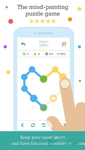 Watercolors 《水彩》是一款让玩家在屏幕上通过点与点之间的连线绘画,最终绘成一个美妙图形的连线游戏。在连线绘图的过程中,玩家还能通过解开图案谜题来混合不同颜色,以创造出新的颜色,就像小时候的美术课上教的那样,黄色混蓝色就会变成绿色,诸如此类。
