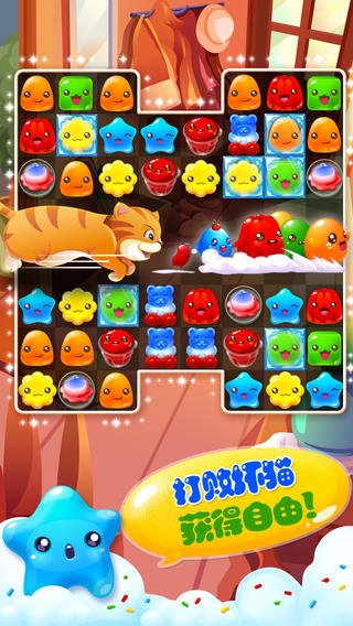 向往自由!这是天性,也是果冻们的愿望! 色彩鲜艳的各式可爱的果冻们要进行一段伟大的冒险——逃出冰箱,避开猫咪,去到广阔自由的世界旅行!三消游戏,不同体验!上百个关卡、多种游戏模式将在您的旅途中一一呈现,可爱的果冻给您清新欢乐的游戏体验。