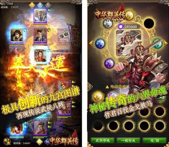 《中华群英传》是一款RPG卡牌手游巨作,禹帝商汤、秦皇汉武、唐宗宋祖、名臣良将、美女妖姬等史上著名人物都可被你征召驾驭,跟随历史原汁原味的故事情节,并引入诙谐幽默的剧情对话,再现上下五千年天朝盛世。游戏中宏大的天命百将图让你的武将搭配更具玩法特色,精美的卡牌人物设计让人过目难忘,华丽的战斗场面给人强烈的视觉冲击,更有独家首创的九宫图系统,将诸多阵法策略运用到极致。 《中华群英传》是目前唯一贯穿中国上下五千年历史的RPG卡牌史诗巨作,经典典故与战役将被原汁原味的重现。整个游戏如同漫步在恢宏壮阔的中国历史长河中,强烈的剧情代入感犹如让你身临其境去体验中华文明。