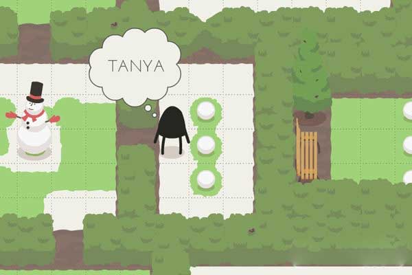 该游戏的玩法非常简单,与推箱子相似,就是让黑色小人将三个大小不同的雪球堆成一个雪人。需要用大雪球作为雪人的下半身,小雪球作为头部,剩下的当然就是上半身啦。整个游戏需在规定范围的花园内进行,这个花园布满网格,玩家每走一步都必须要确认没有东西阻挡你前进的道路,与此同时还要考虑这个雪球推过去,小人是否还能绕过另一面推动它。进行顺利的话,你将得到一个 Q 萌的雪人,和一个完整的花园。