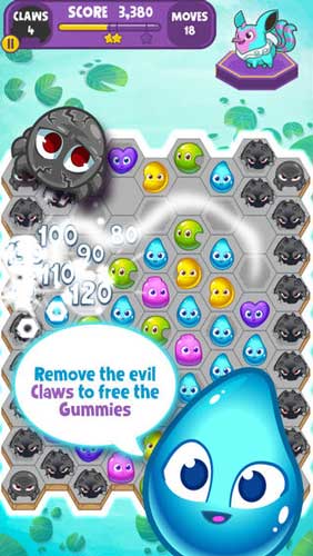 游戏采用的是蜂窝状的菱形网格,相对于传统的四边形网格,六边形网格连线时的选择更多,情况也更加多变。操作方式很简单,把三个或者三个以上的同种元素用一条线连接起来就可以了。要注意的是在《宠物连线》中,一次性连接多个元素不会形成炸弹等道具。