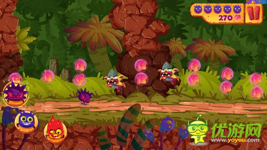 《强力冒险:Mighty Adventure》是一款横版酷跑闯关游戏,冒险的路上要避开一堆敌人并收集泡泡,三个角色着实让人手忙脚乱。游戏中给这三个角色分配了各自独特的能力,一个能重踩,一个会双段跳,还有一个冲破力极强。根据障碍物的不同,结合当前的场景切换选择合适的角色来避开障碍,闯过关卡。