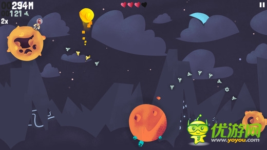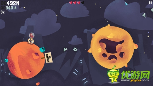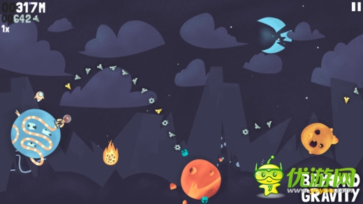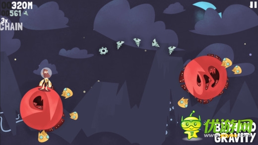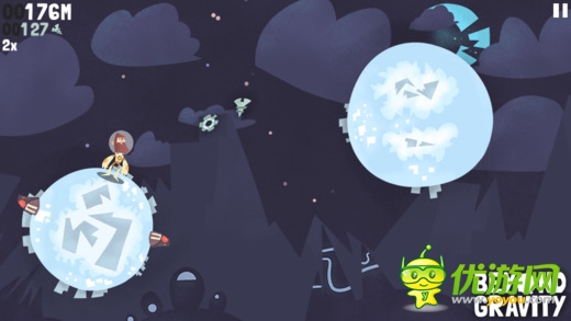 《超越重力 Beyond Gravity》是一款跳跃类型的高分挑战游戏。对象是一个个模样奇特的星球。玩家要控制我们的大胡子从一个星球跳跃到另一个星球上,同时收集散落在其中的飞船碎片,当然还有各种道具可供你收集使用。游戏采用了简单的触屏点击操控,点击整个屏幕的任意位置都可以操控人物进行跳跃。游戏过程中收集到的碎片可以供你购买新的装备或是升级能力,让你跳的更远哦。