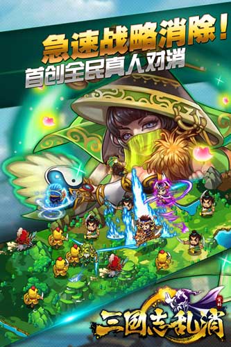 《三国志乱消》是一款以三国演义为背景的策略消除RPG网游,由本公司研发力推的最新作品。 首创RPG玩家联网对战,真人对消,武将乱斗!让玩家体验极速爽快兵种消除、武将收集与养成、攻打历史战役、群起诸侯攻乱世的无限乐趣。 只等你来,决战天下! *游戏特色: 『真人对消 联网战斗』 首创RPG玩家联网对战,真人对消,拒绝无脑拼数据! 『武将兵种 齐上阵』 百名武将搭配7系特色兵种,步、骑、谋、术、舞、甲、弓。 率兵点将,气场爆棚!策略搭配,智慧调兵遣将,逆转乾坤! 将星璀璨,三国名将尽入掌中! 『硝烟三国 攻城乱世』 还原历史名城,攻城略地、热血厮杀,酣畅淋漓。 『好友上阵 齐心对敌』 真正多人副本!与好友群战BOSS。 『驰骋三国 峥嵘岁月』 书写群雄传奇,一统江山,傲视天下,谱写史诗篇章! 『多重活动 名将领回家』 夺宝、抢包、神兵利器、火烧赤壁、论武场、竞技塔,福利送不停! 更有多重团战:国士无双、5人BOSS战、真人对消、南蛮入侵!