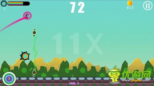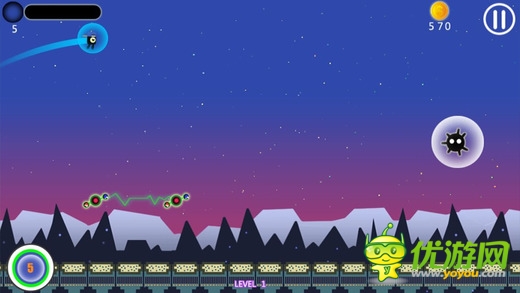 《小黑大跳 Big Leap - Space Adventure》是一款跳跃动作小游戏,背景清新、干净,独特的音乐是其中一特点。点击屏幕小黑会迅猛的向下冲然后再弹回空中,难点就是空中那些障碍物是不能碰到的,在跳的过程中还能收集金币。游戏简单到有点抓狂因为弹的瞬间小黑冲出去的速度让你摸不着头脑的就OVER了。