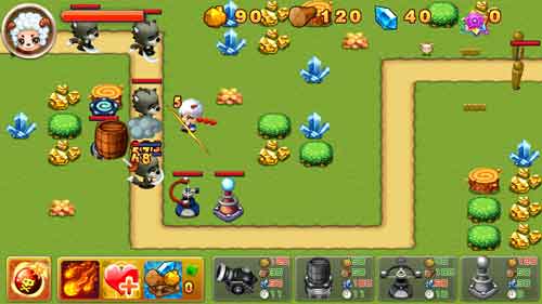 《羊咩咩历险记》是一款android单机游戏。 新颖的“塔防+RPG+资源采集”游戏。游戏主角可以在地图中任意走动,采集资源, 建造防御塔,还可以亲自投身战场与敌人格斗。 羊咩咩、羊酷酷等五只小羊,分别属于金木水火土的一种属性,各有独特的技能,玩 家操作某一只小羊,防御攻击羊村的大批狼群。