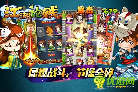 《江湖论贱》是史上最爆笑的毁三观武侠策略类卡牌手游。古典武侠与现代萌系的基情结合,人物搞怪尽显深度,剧情诙谐极具内涵,战斗节操粉碎性骨折。幼女、神女、痴女全部一锅端,激爽的战斗让你嗨到停不下来,华山论“贱”谁比谁更“贱”!这个江湖由你主宰,无需等待!