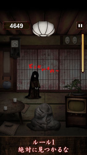 《找到你了》中文名《Found!》,这款游戏主打恐怖元素,游戏中操作的主角住在一栋和风十足的鬼屋里,里面的怨灵恶鬼数不胜数,我们既没有能够收服它们的特别相机,也无法找个柜子躲起来,唯一能做的只是用身边仅有的被子捂住头部。虽然玩家只要按照屏幕就可以完成上面的步骤了,但这位角色显然没有做过憋气训练,只要隔上一段时间就必须探头呼吸,要是此时正好恶鬼出现,那么你只能重来了!