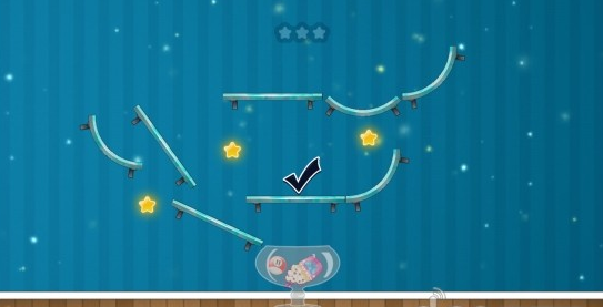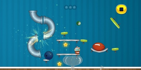 《可爱小甜点(Trickie Cookie)》是一款简单可爱的休闲小游戏,通过重重装置的阻碍和过滤,只为把蛋糕装进近在咫尺的碗里。游戏过程分两个部分进行,首先需要观察并调整好置物台的角度并旋转好方向。清除一切杂物准备就绪后,点击开始按钮就可以观赏蛋糕的行进过程了。每个关卡中都挂有三颗星星,全部得到可以增加分数。