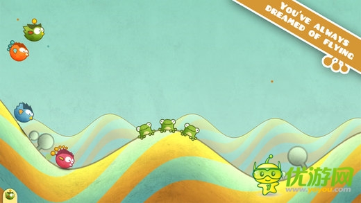 你是否一直梦想着会飞行,但是你的翅膀很小。这款游戏讲述的就是一款手绘可爱的小鸟虽然翅膀很小但是可望飞翔,玩家借助山谷的力量来使小鸟《翼飞冲天-Ting Wings》。操作时按住屏幕使得小鸟获得足够的加速度,在小鸟向上前松开屏。游戏有两种模式,想要通过关还是很考验你的操作的。