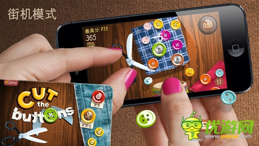独树一帜的《Cut the Buttons(剪纽扣)》是一款真正的多点触控游戏。反应敏捷、运行稳定、精彩无比。让大脑休息一下,来享受绝妙的游戏乐趣吧!游戏没有冗长的介绍,也没有枯燥的背景故事,一切都很简单。