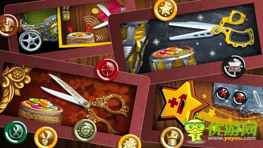 游戏玩法:用两个手指拿起剪刀。 小心点儿!可别割伤自己。 像用真剪刀一样把游戏中的纽扣剪掉。 如果您使用左手玩游戏,可以在游戏设置中改变布头的飞入方向和纽扣的掉落方向。 剪刀操作起来十分灵活,剪左剪右、剪上剪下,随心所欲。您在剪纽扣时可以控制扣子的掉落轨迹,尽量让所有的纽扣都到杯子里去。 当杯子里有100颗纽扣时,您就能赢得加分或者找回丢失的纽扣。 不要让任何一个缝有纽扣的布头溜掉。想方设法让剪下的纽扣掉到在杯子里。