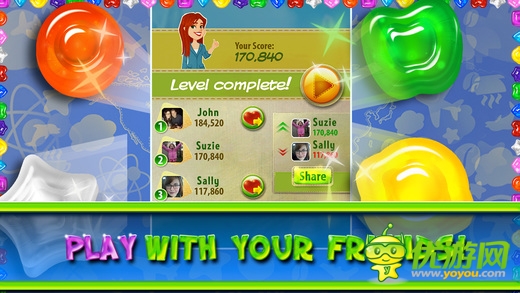 是一款消除类游戏,下落的糖果就要来到,三个就可以消除,并赚金币,积木、经验。