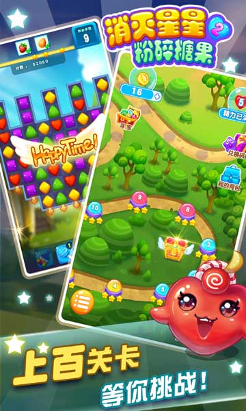 没有广告,全面超越《消灭星星1代》《天天爱消除》,三消类游戏。几百个关卡,超长游戏时间,可爱甜蜜的游戏风格,广大女性玩家的最爱哦!只要实力够强0元通关不是梦! 游戏中您可以感受到其它游戏所不一样的乐趣。由于各种特殊糖果的存在,多种游戏模式的共存,使游戏变的不再是简单的消除,它需要思考、需要坚持、也需要信心。《消灭星星2粉碎糖果》越往后越刺激、越有难度!喜欢消除类游戏的朋友快来试试吧!