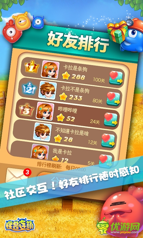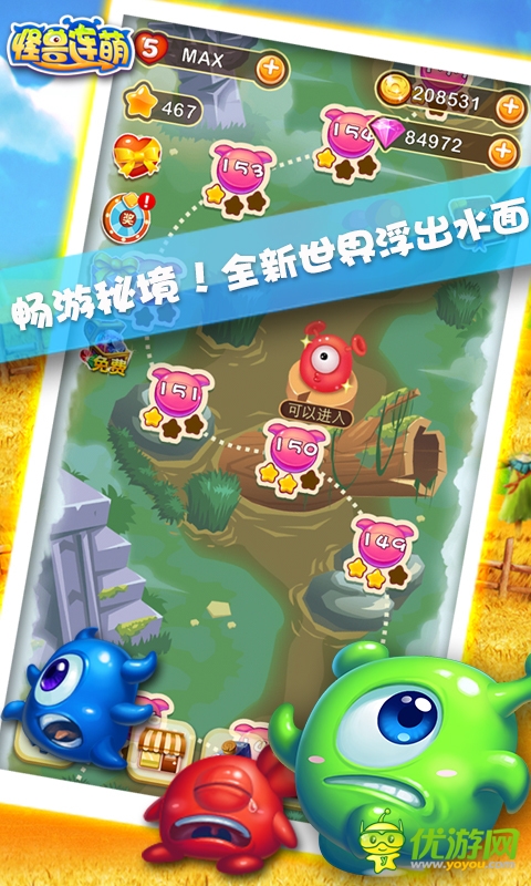 只需要用手指连线3个以上相同颜色的小怪兽就可以进行消除,连线越长攻击就越强!想证明自己的实力?那就去挑战谜境或者刷满3颗星吧!