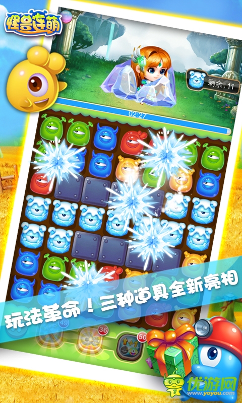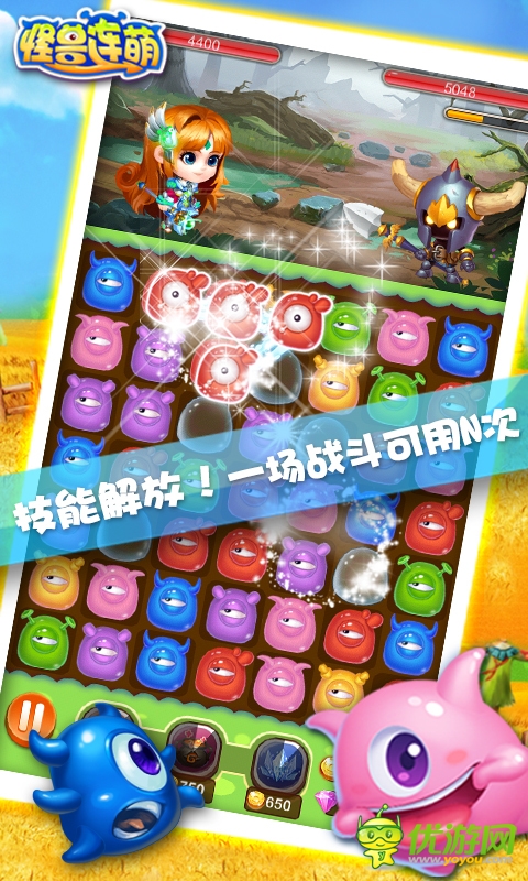《怪兽连萌》是由网易门户自主研发,集消除与角色扮演于一体的休闲手游。游戏采用了独特的连线消除方式,连线越长,消除得分越高,不联网也能玩哦!不同于一般的消除游戏,角色扮演也是游戏中的重要一环,又Q又萌的角色和小怪兽打成一片,绚丽梦幻的战斗效果,搭配让你萌翻天的音效,根本停不下来!