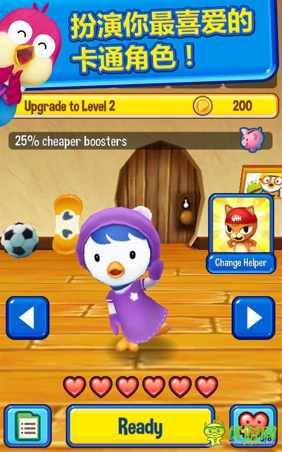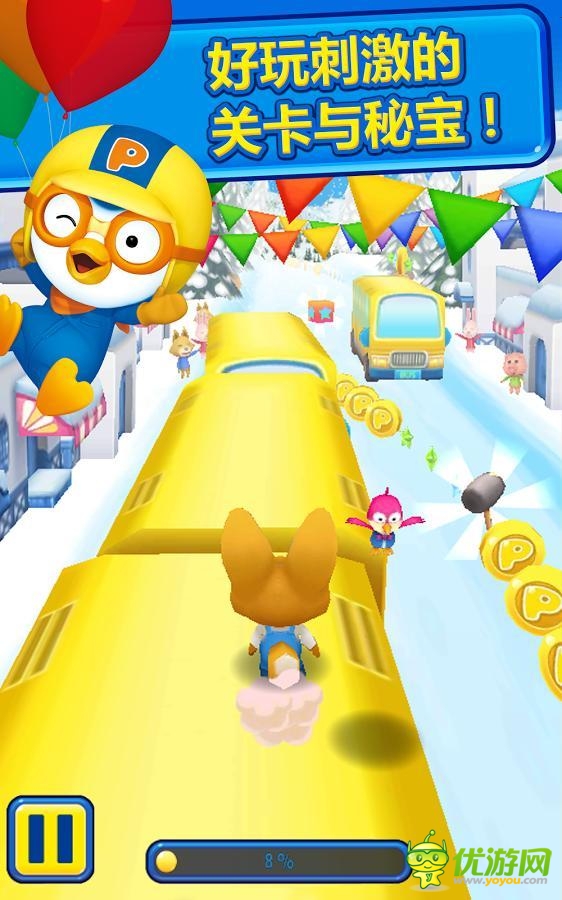 《波鲁鲁小企鹅大赛跑 Pororo Penguin Run》是一款以韩国国宝级卡通人物波鲁鲁为主角的跑酷游戏。游戏中可使用所有波鲁鲁卡通中的可爱角色,操作也是很简单,点击屏幕和倾斜手机即可完成对游戏的控制。游戏中有着包罗万象的跑道:冰宫、白雪皑皑的小镇、绿地森林、隧道等等。还可以启动汽车、飞行、火箭等各种有趣刺激的特殊模式。每天每周提供新的挑战竞赛让你赢大奖,更可以登录Facebook与朋友竞赛、一较高下或互赠礼物。