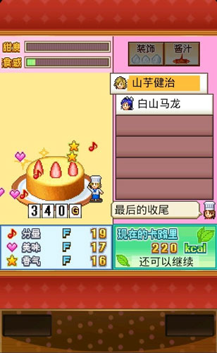 在竞赛中获得优胜的话,可以吸引大量客人来店的点心屋育成游戏。