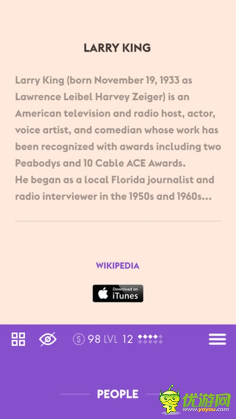 《按图猜物_Iconic》是一款包括了电影、音乐、历史、流行文化、语言、表情符号、名人的各种猜图游戏,如果你是喜欢画画的,喜欢开动你的脑筋,那么你会很享受这款游戏的,超过二百款漂亮的手绘画,清晰的图标和简约的设计让你在玩游戏的同时发挥出最好的想象力。