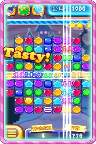 游戏的基本规则很简单,每颗糖果都可以跟上、下、左、右的糖果互换位置,如果换了之后能达成某种糖果连线(至少得3个),就能消除这组糖果,如果换了之后无法连线,就无法交换。由于各种特殊糖果的存在,使《消灭星星2粉碎糖果》变的玩法多样,例如:彩糖果,它能消除屏幕中某种颜色的所有糖果。条纹糖果,它能消除一排或一列的所有糖果等等!《消灭星星2粉碎糖果》给人感觉爽快,欢乐,喜欢消除类游戏的朋友快来试试吧!