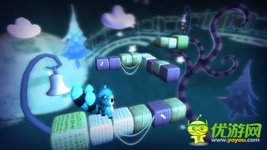 以春、夏、秋、冬四季为主题背景的3D解谜游戏,通过不断的旋转视角来制造微妙的视觉错位感来完成关卡内容。为了配合游戏的可爱童话风,玩法上并不是很难。方块搭成的桥上小角色会自动走动,直到每条路的断开处或者尽头时便会自动折返,而玩家要做的是缓缓旋转视觉角度,寻找一个合适的契机把断开处补上,让可爱的小角色能够顺利走到目的地。