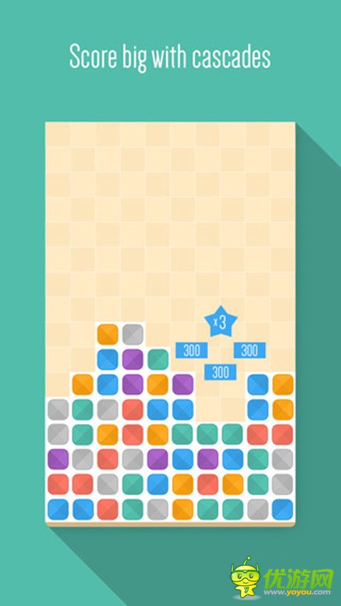 十字三消(Crossed)是一款由休闲益智消除游戏。游戏的玩法不复杂,只需把排成“十”字形的五个方块从上方掉落下来,点击改变它们的排列方式,调节位置,当三个或三个以上相同颜色方块排在一起即可消除。