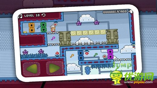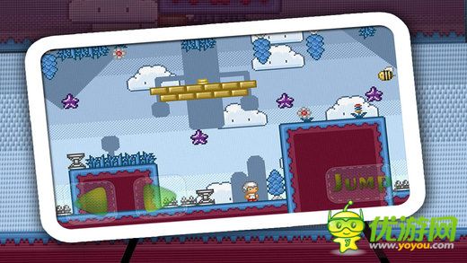 一款画风可爱的横版冒险游戏,游戏的操作类似于大家都熟悉的超级玛丽,玩家控制着主角,不断的前进和探险,路上将遇到各种陷阱和障碍,非常具有挑战性; 刺激无比体验感:独一无二的跳跃操控,绝对让你欲罢不能,尽情通关所带来的快乐! 绚丽的画面:美术团队苦心研发的精美图形,绝对让你流连忘返,沉浸在魅力无限卡通世界中!
