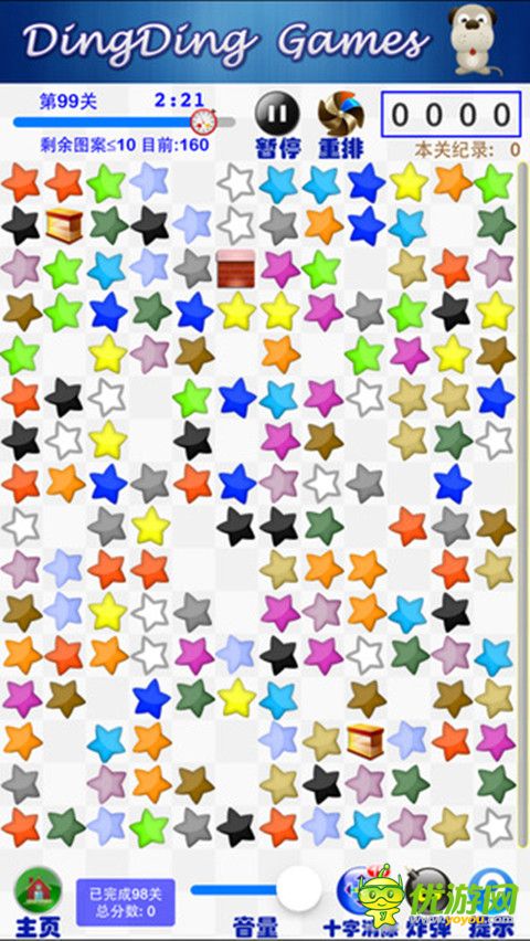 游戏中一共有提示、炸弹、十字消除3种道具,有的是限时使用,有的是计数使用,您可以灵活组合他们,以得到高分:)