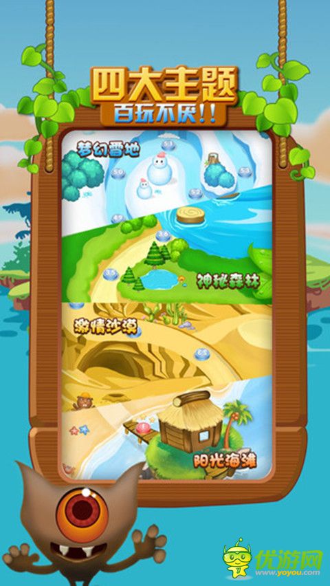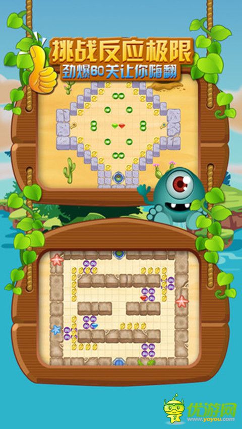 小萝卜头离开温馨的小屋,准备来一次说走就走的冒险之旅,刚启程就被小怪物们布下的天罗地网挡住了去路。赶快运用你超凡的智慧和敏捷的双手帮助小萝卜头冲关破阵,穿越阳光海滩、激情沙漠、神秘森林和梦幻雪地,躲过小怪物们的黑手吧!游戏中可以收集金币和宝石,用来升级各种道具。 优美的物理运动,惊险刺激的怪物布阵; 考验玩家的反应力、观察力、手指灵敏度。