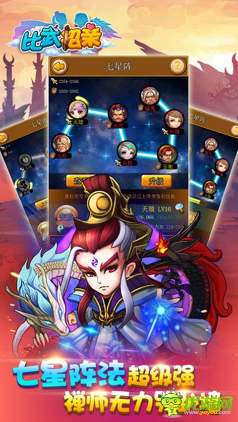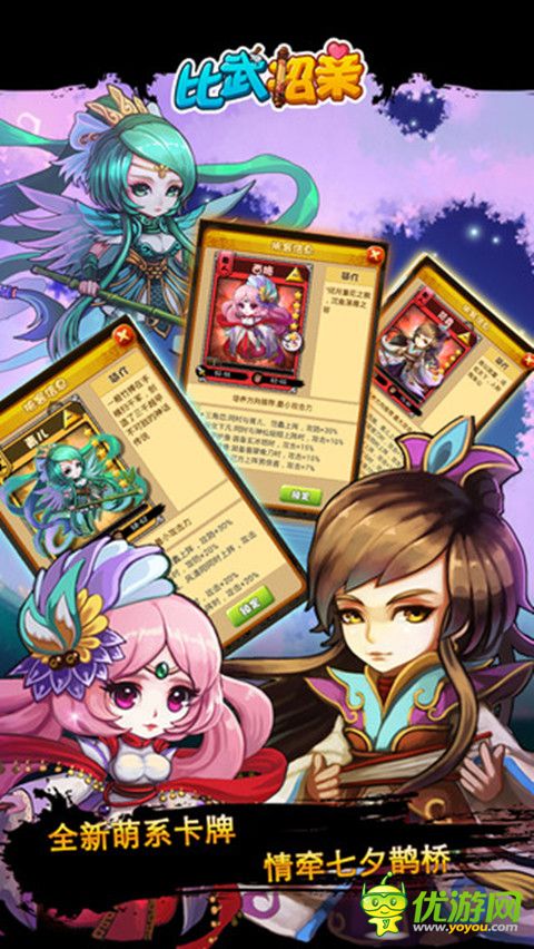 《比武招亲》是一款招亲抢亲、结缘交友、语音聊天的Q版武侠卡牌手游。拥有精致的卡通侠客,动听的古风音乐,独创的特色玩法,以及昔年不绝于口的江湖大侠、神兵利器和绝世神功,随手一点,让你轻松体验江湖中的儿女情长!