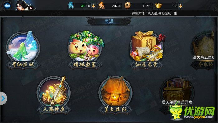 1、在游戏主界面选择“奇遇”,然后点击“仙魔悬赏”,如下图